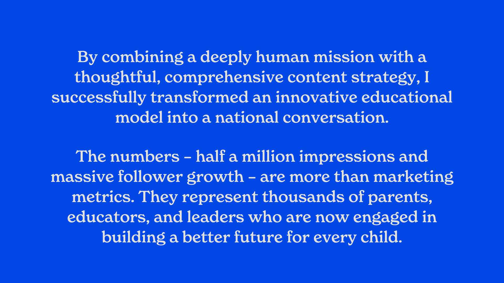The numbers – half a million impressions and massive follower growth – are more than marketing metrics. They represent thousands of parents, educators, and leaders who are now engaged in building a better future for every child.
