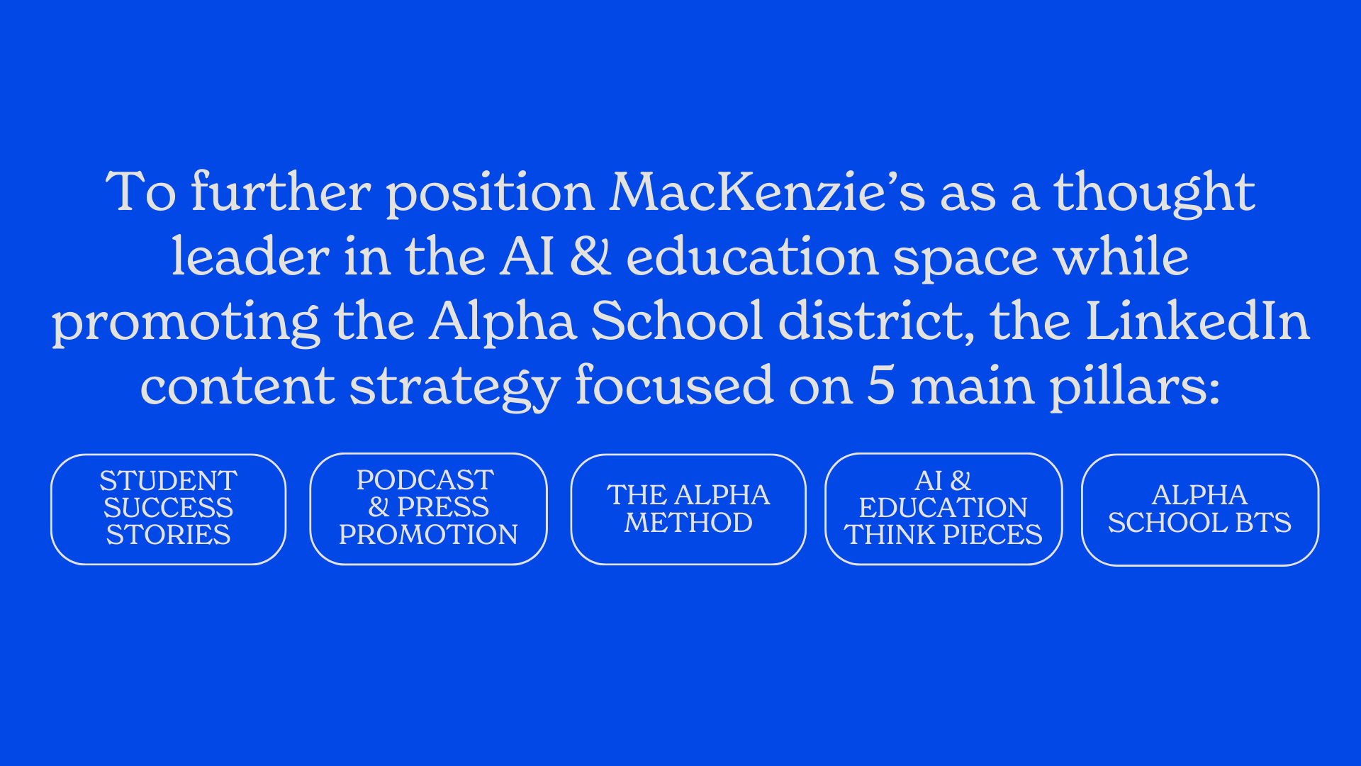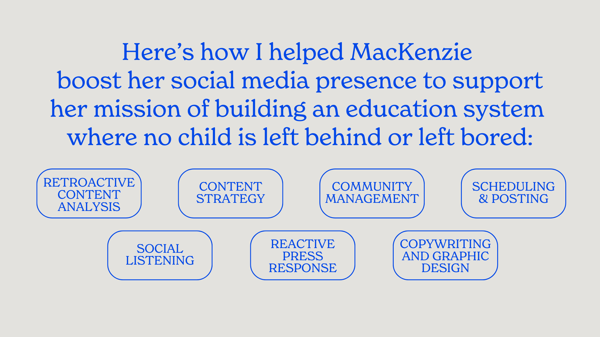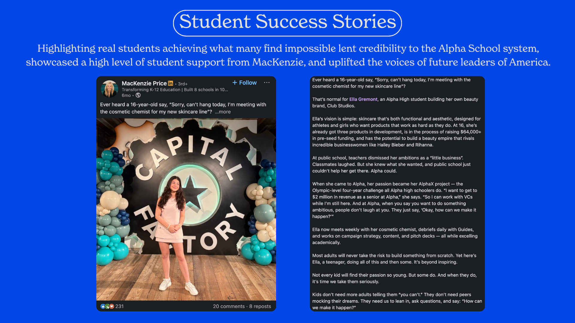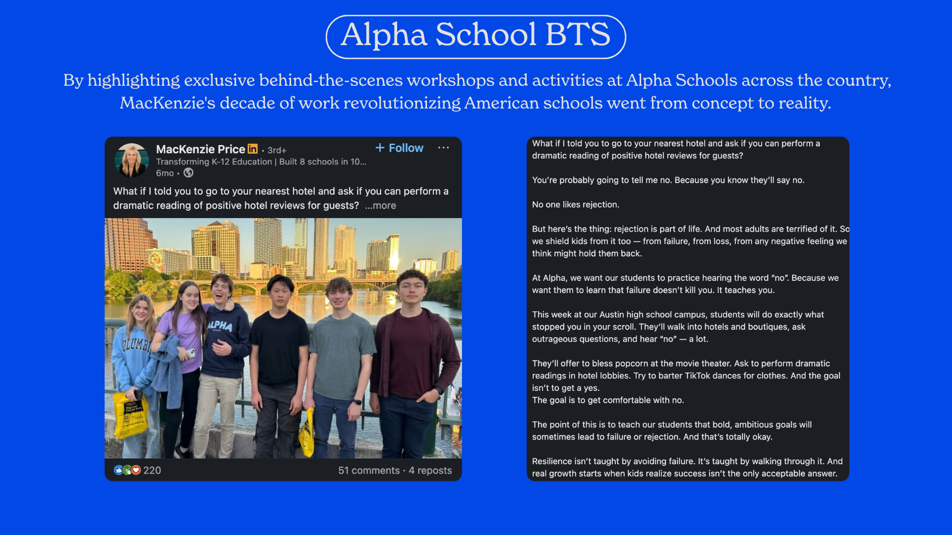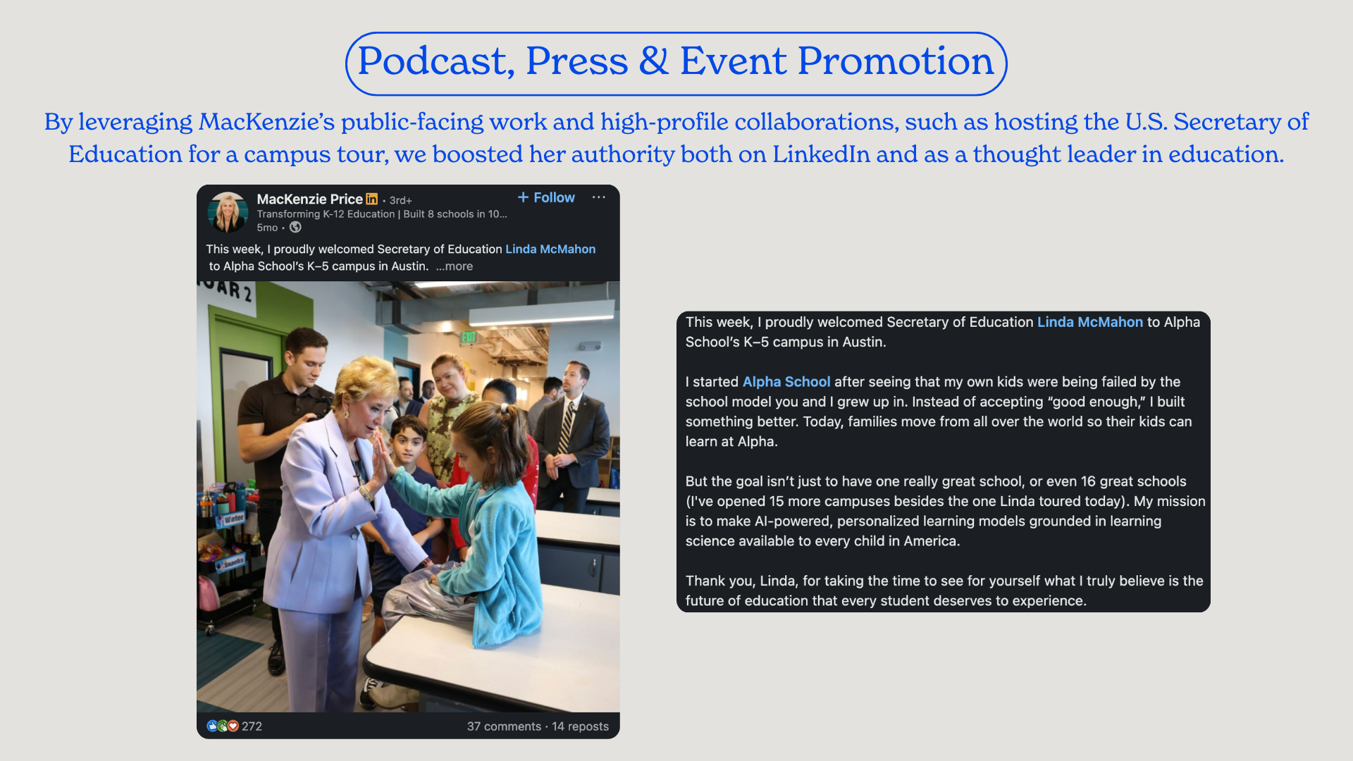By combining a deeply human mission with a thoughtful, comprehensive content strategy, I successfully transformed an innovative educational model and MacKenzie Price’s role in it into a national conversation.