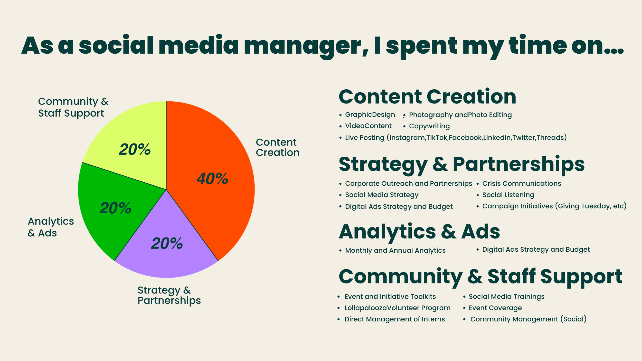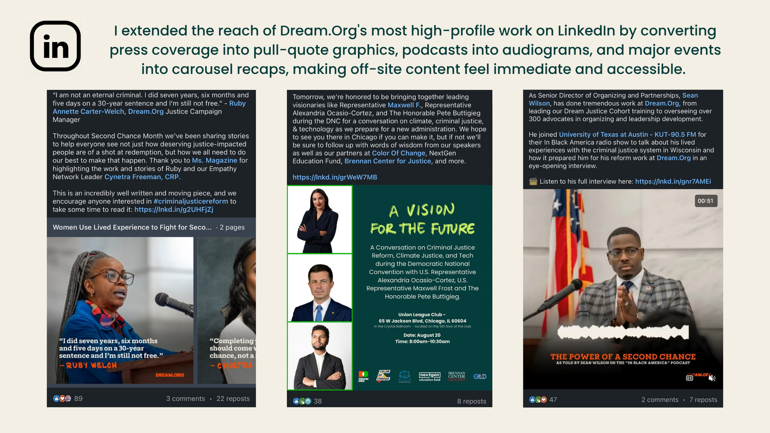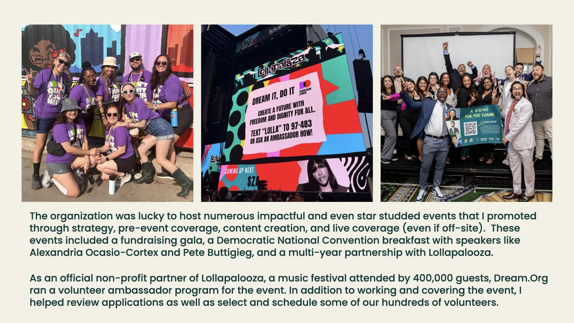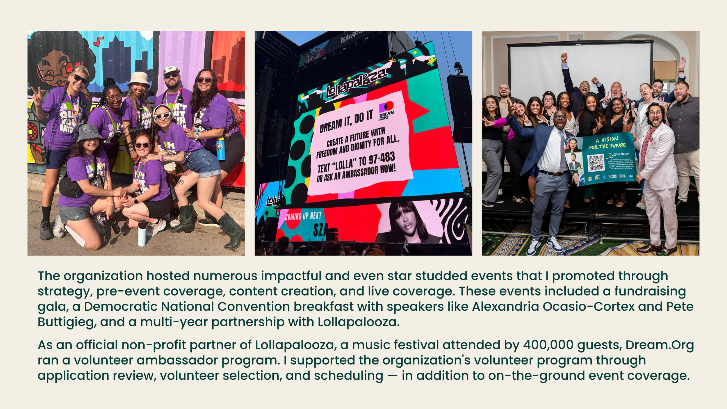 In 2.5 years at Dream.Org as a social media manager, I successfully used my marketing skills for good to promote a pro-social nonprofit organization and bring people together around a theme of community. From innovative social media strategy to digital ads to analytics management, I did it all while promoting a world with dignity and equity for all.